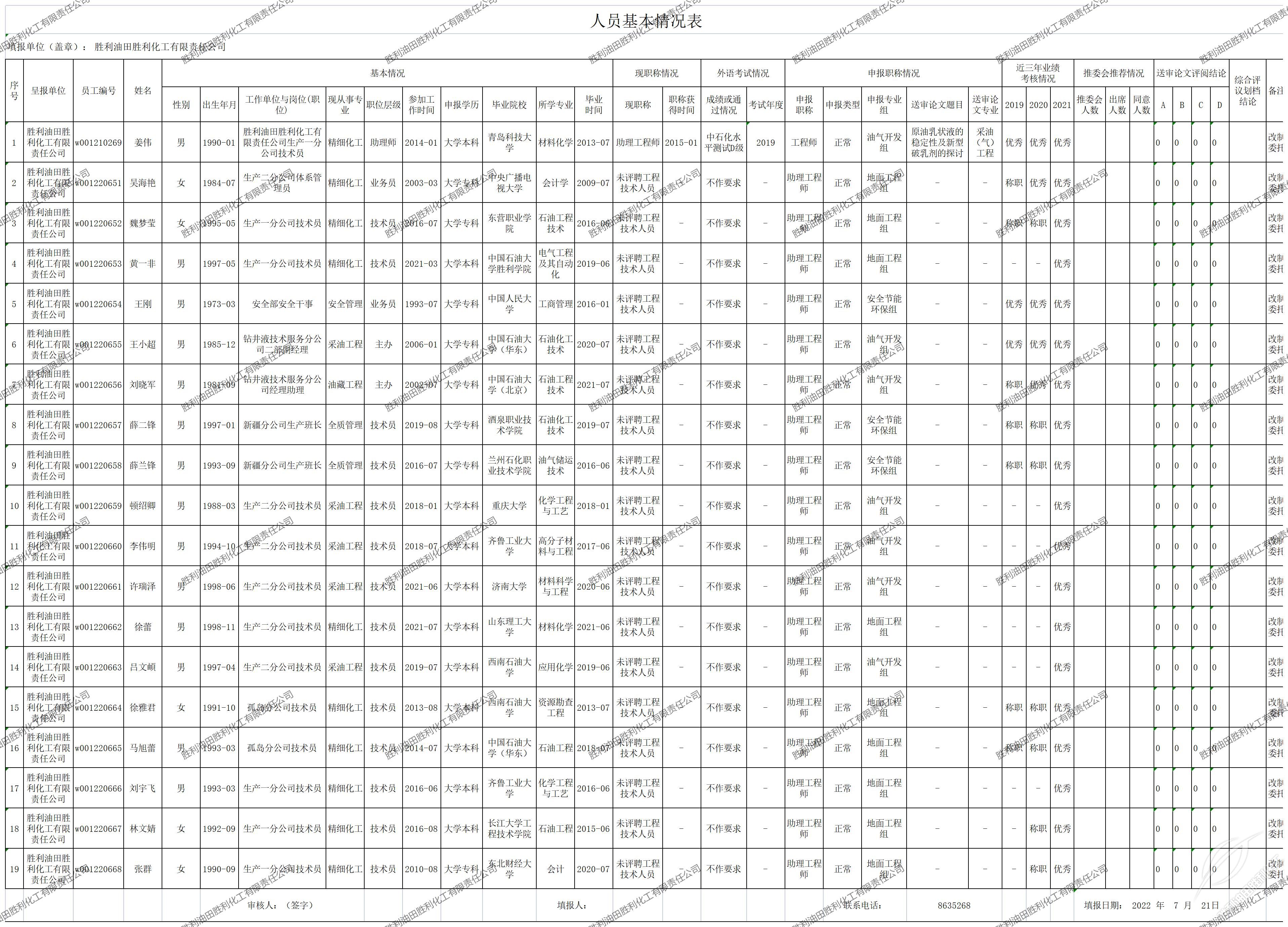 勝利油田(tian)淄博荣亨服装制造有限责任公司有限責任**2022年中(zhōng)石化參加職稱(chēng)評審人員基本(běn)情況公示